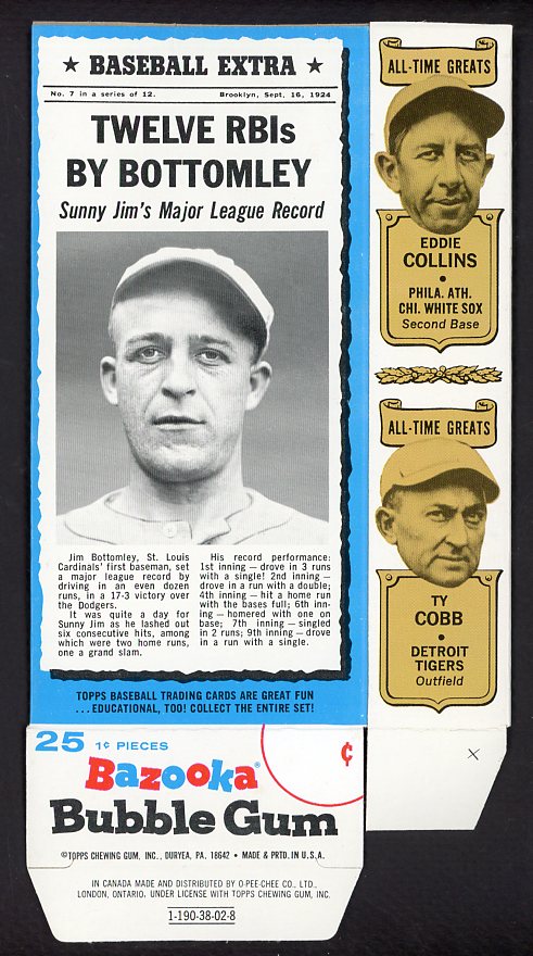 1969 Bazooka #007 Jim Bottomley Cardinals Box No Top Flap EX-MT/NR-MT 536912