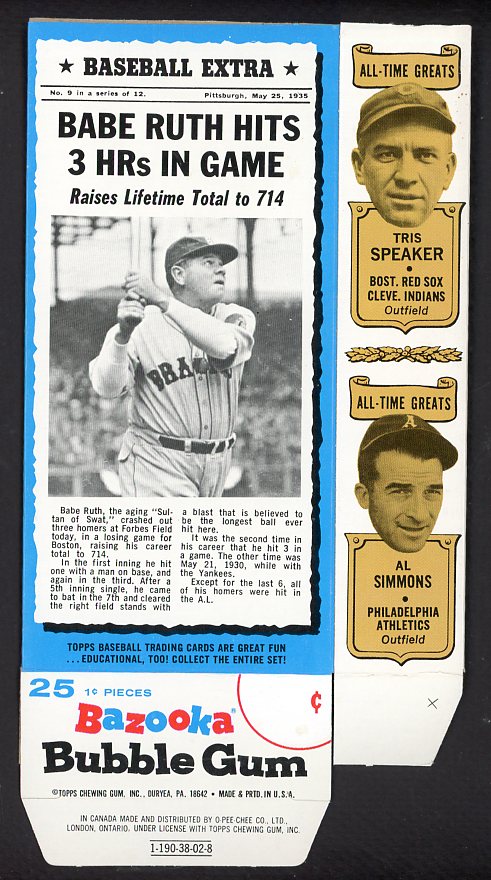 1969 Bazooka #009 Babe Ruth Braves Box No Top Flap EX-MT/NR-MT 536914