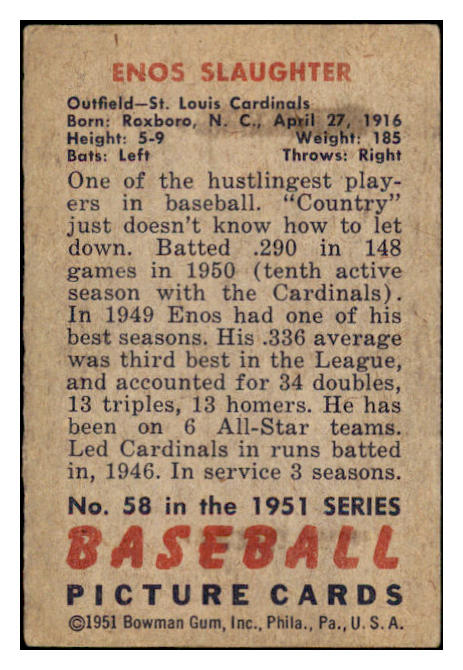 1951 Bowman Baseball #058 Enos Slaughter Cardinals EX 530862