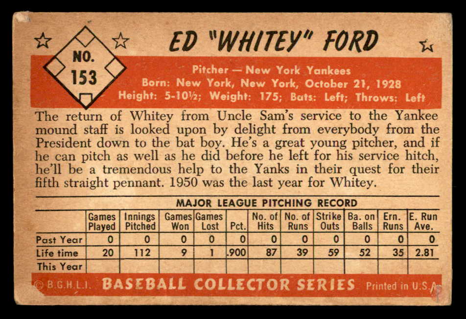 1953 Bowman Color Baseball #153 Whitey Ford Yankees VG 538456