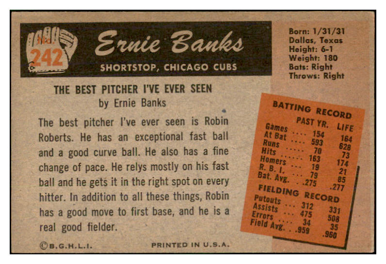 1955 Bowman Baseball #242 Ernie Banks Cubs Good 534285