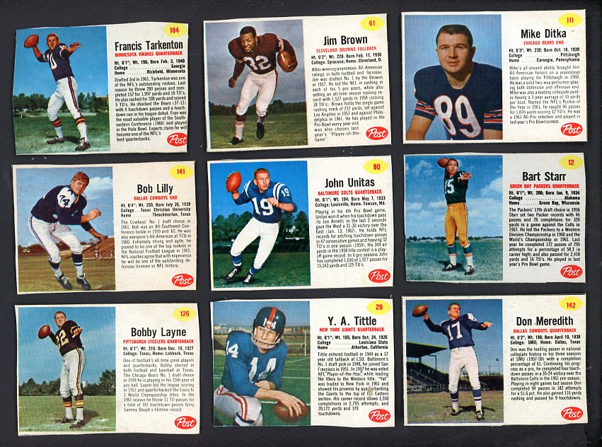 1962 Post Football Complete Set Nice Brown Ditka Tarkenton 537569