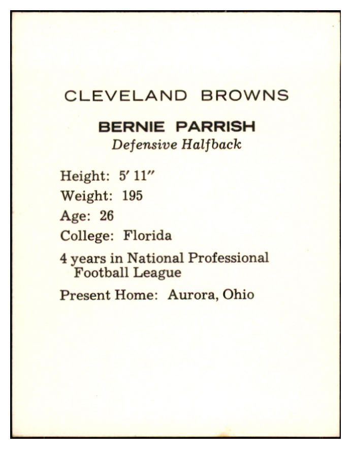 1962 Kahns Football Bernie Parrish Browns NR-MT 537211