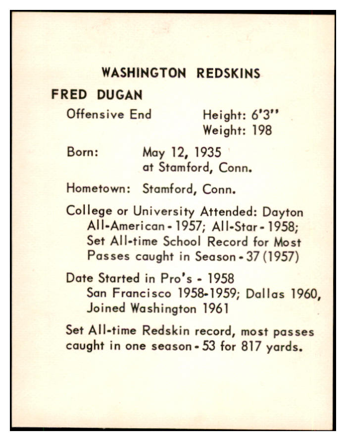 1963 Kahns Football Fred Dugan Washington NR-MT 537228