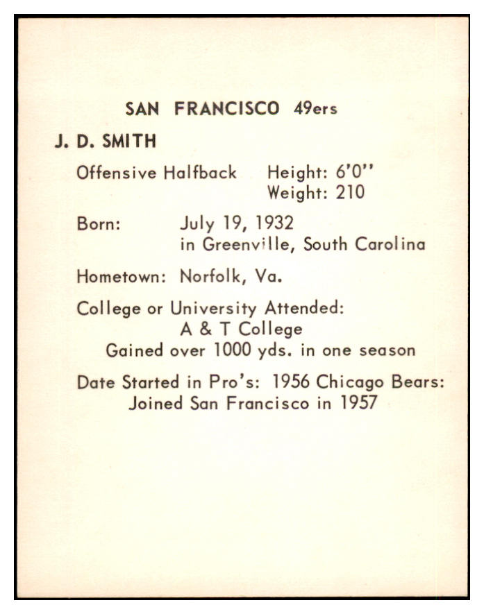 1963 Kahns Football J.D. Smith 49ers NR-MT 537262
