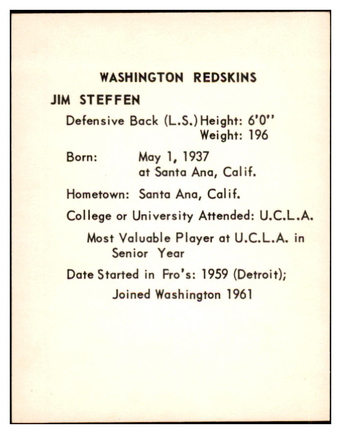 1963 Kahns Football Jim Steffen Washington NR-MT 537265