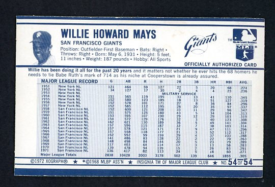 1972 Kelloggs #054 Willie Mays Giants Cracked RBI 1855 530039