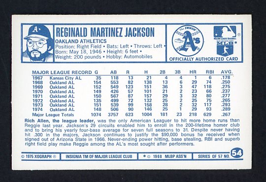 1975 Kelloggs Baseball #054 Reggie Jackson A's Cracked 530133