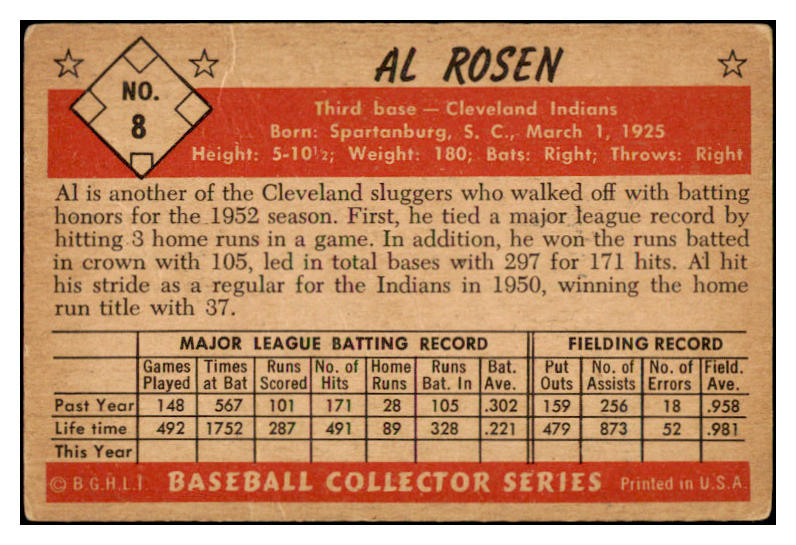 1953 Bowman #008 Al Rosen Indians Signed Autographed 532110