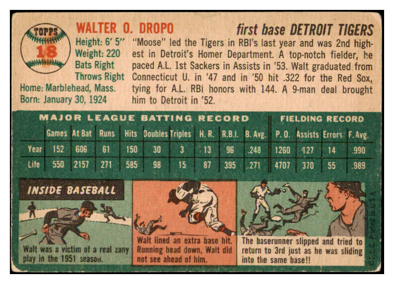 1954 Topps #018 Walt Dropo Tigers Signed Autographed 532079