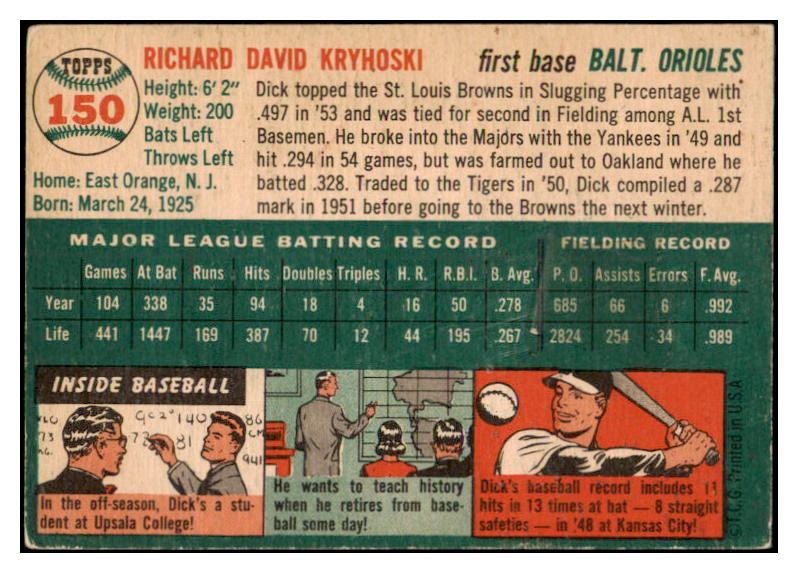 1954 Topps #150 Dick Kryhoski Orioles Signed Autographed 532087