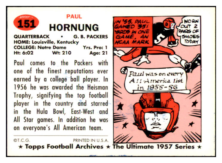 1957 Topps Archives #151 Paul Hornung Packers Signed Autographed 532026