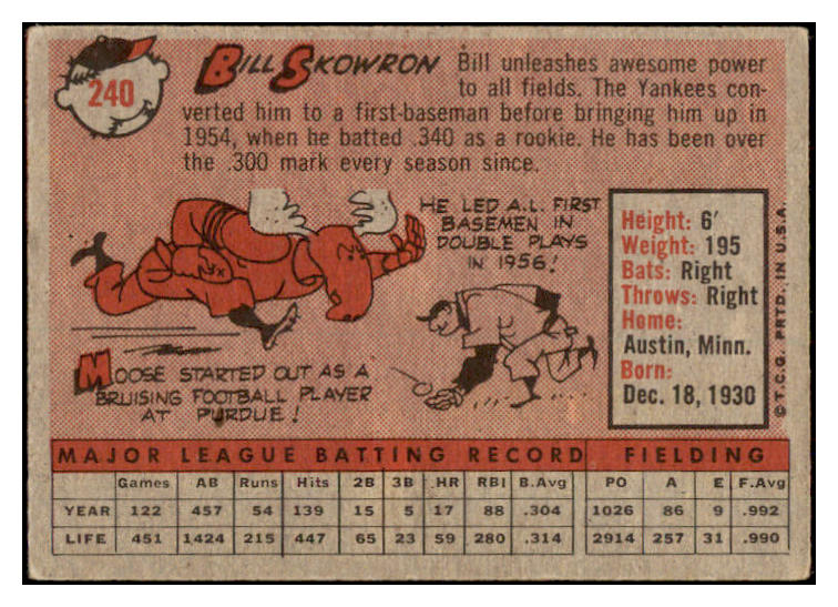 1958 Topps #240 Bill Skowron Yankees Signed Autographed 531914