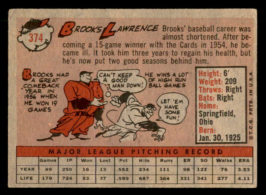 1958 Topps #374 Brooks Lawrence Reds Signed Autographed