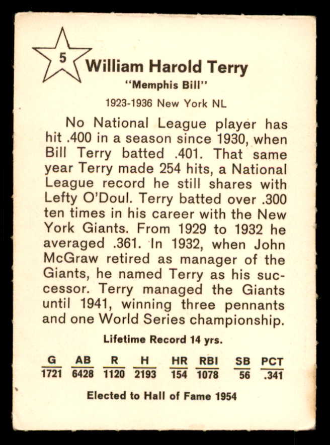 1961 Golden Press #005 Bill Terry Giants Signed Autographed
