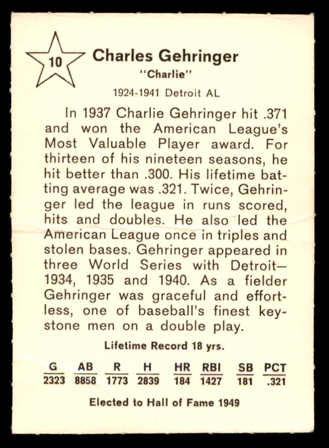 1961 Golden Press #010 Charles Gehringer Tigers Signed Autographed