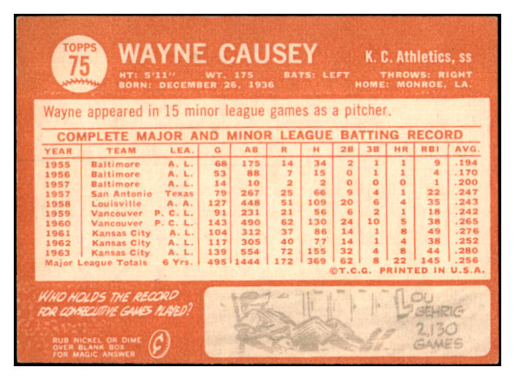 1964 Topps #075 Wayne Causey A's Signed Autographed 531936