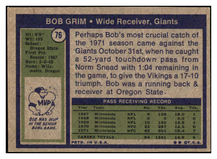 1972 Topps #076 Bob Grim Giants Signed Autographed 532036