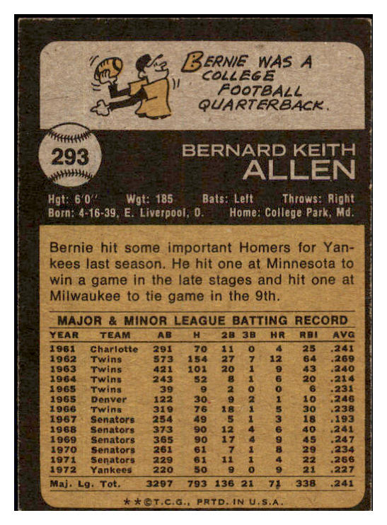 1973 Topps #293 Bernie Allen Yankees Signed Autographed 531870