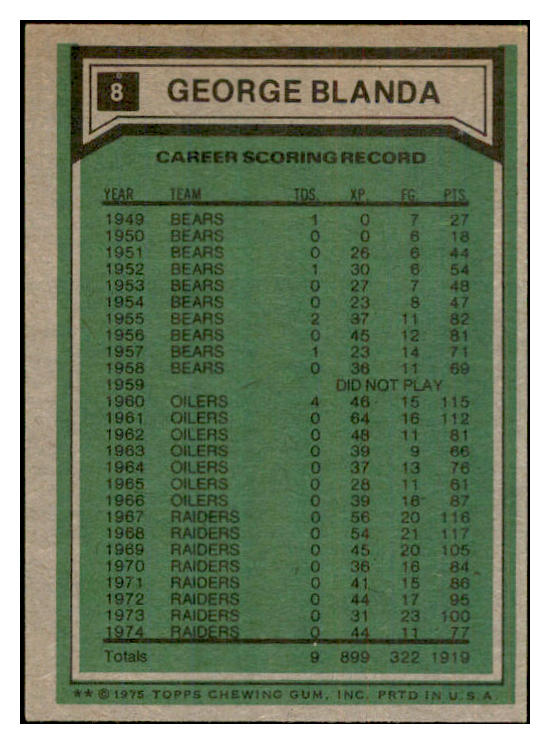 1975 Topps #008 George Blanda Raiders Signed Autographed 534501