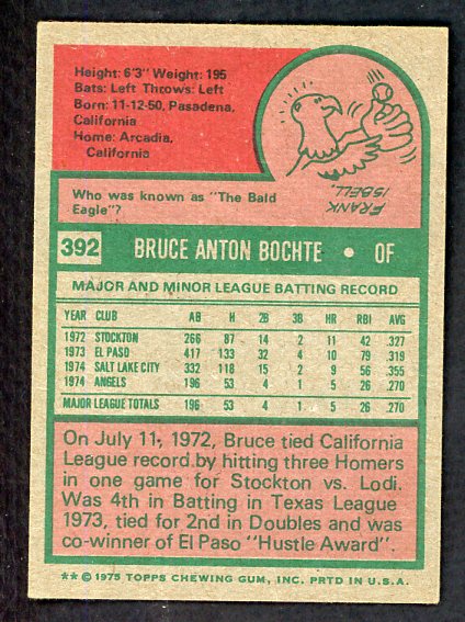 1975 Topps #392 Bruce Bochte Angels Signed Autographed 534507