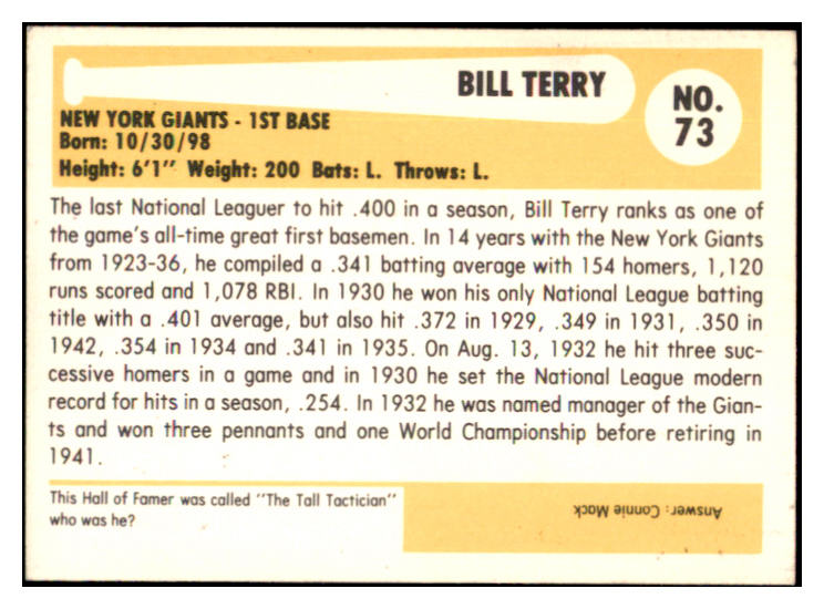 1980 Baseball Immortals #073 Bill Terry Giants Signed Autographed 532011