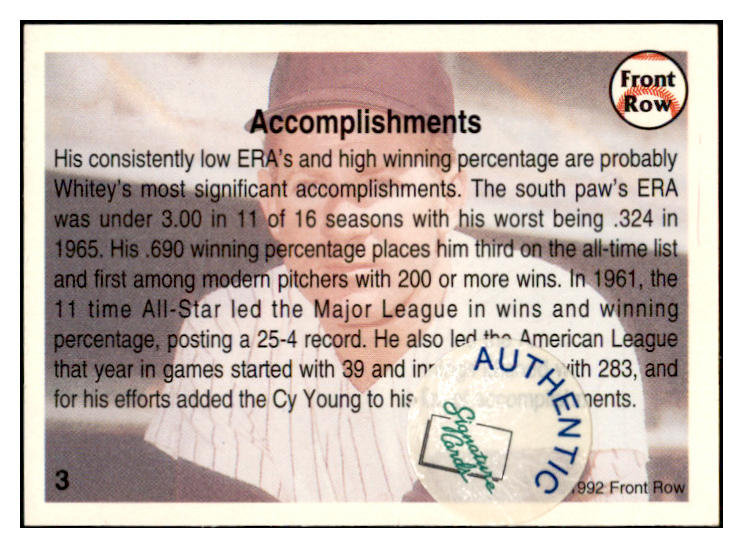 1992 Front Row #003 Whitey Ford Yankees Signed Autographed 534499