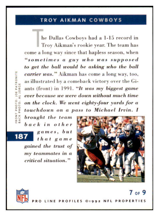 1992 Proline #007 Troy Aikman Cowboys Signed Autographed 532025