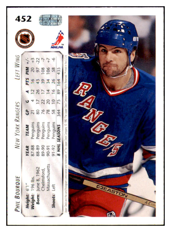 1992 Upper Deck #452 Phil Bourque Rangers Signed Autographed 532046