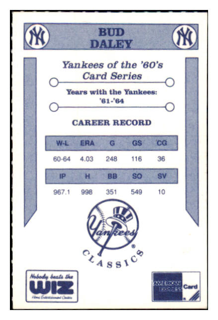 1992 Wiz Bud Daley Yankees Signed Autographed 532053