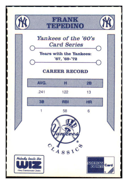 1992 Wiz Frank Tepedino Yankees Signed Autographed 532061