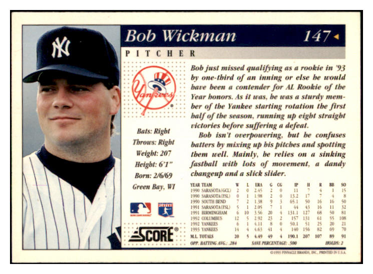 1994 Score #147 Bob Wickman Yankees Signed Autographed 531921