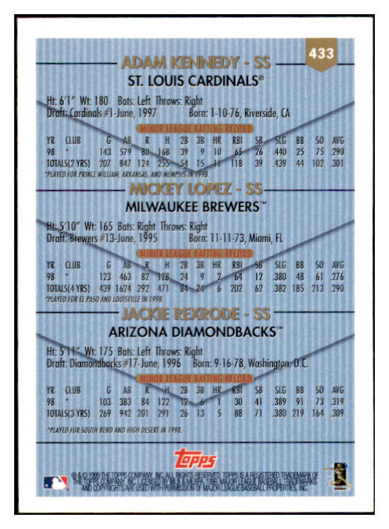 1998 Topps #433 Mickey Lopez Jackie Rexrode Signed Autographed 531977