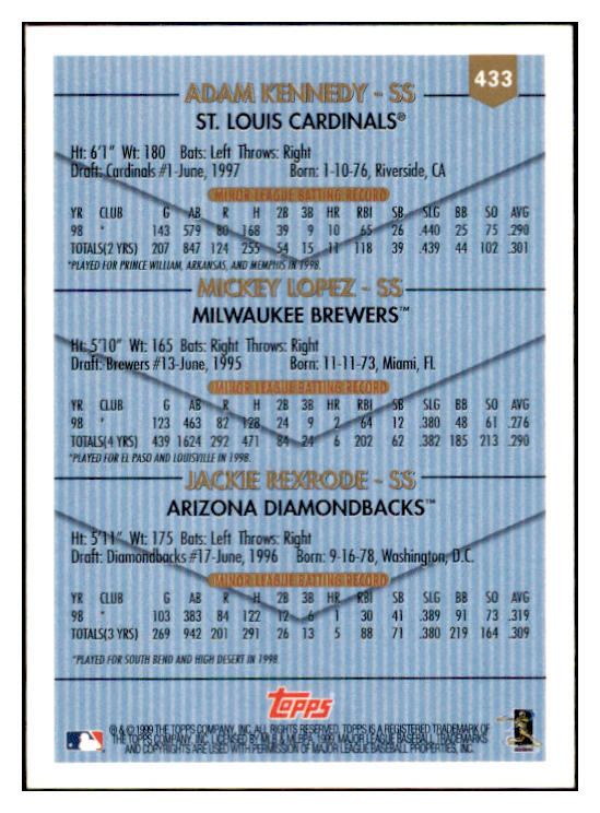 1998 Topps #433 Mickey Lopez Jackie Rexrode Signed Autographed 531979
