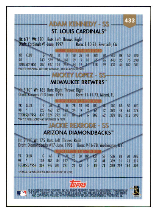 1998 Topps #433 Mickey Lopez Jackie Rexrode Signed Autographed 531981