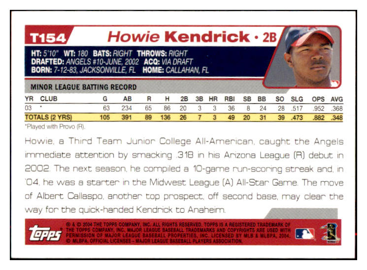 2004 Topps Traded #154 Howie Kendrick Angels Signed Autographed 531958