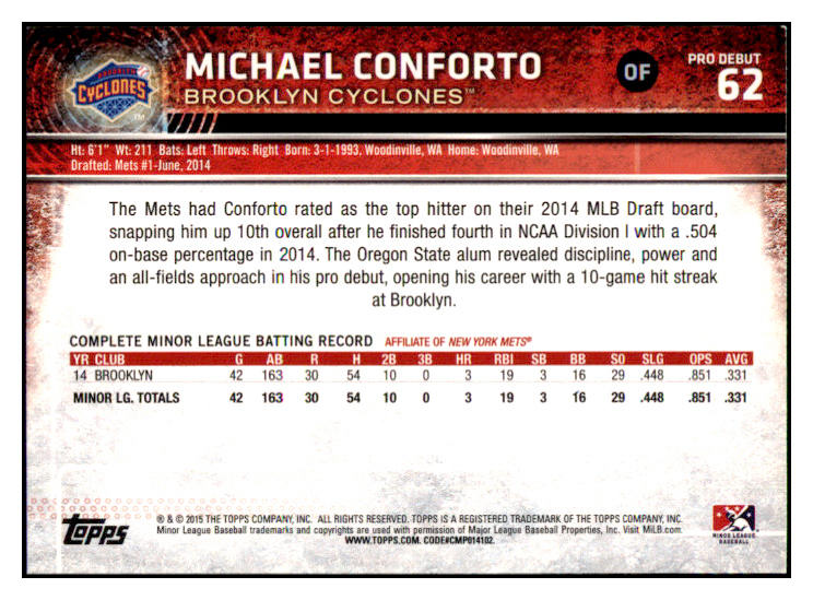 2015 Topps Debut #062 Michael Conforto Mets Signed Autographed 532022