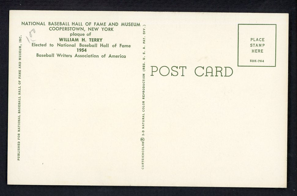 Yellow Hall of Fame Postcard Bill Terry Giants Signed Autographed