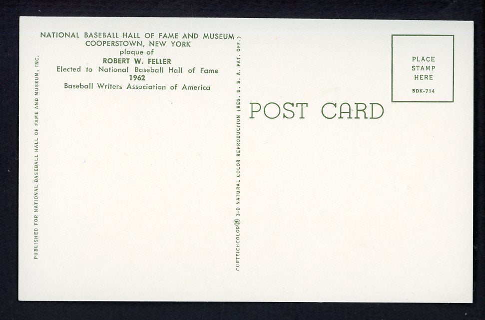 Yellow Hall of Fame Postcard Bob Feller Indians Signed Autographed