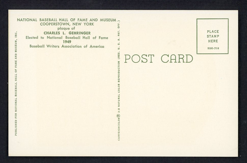 Yellow Hall of Fame Postcard Charles Gehringer Tigers Signed Autographed