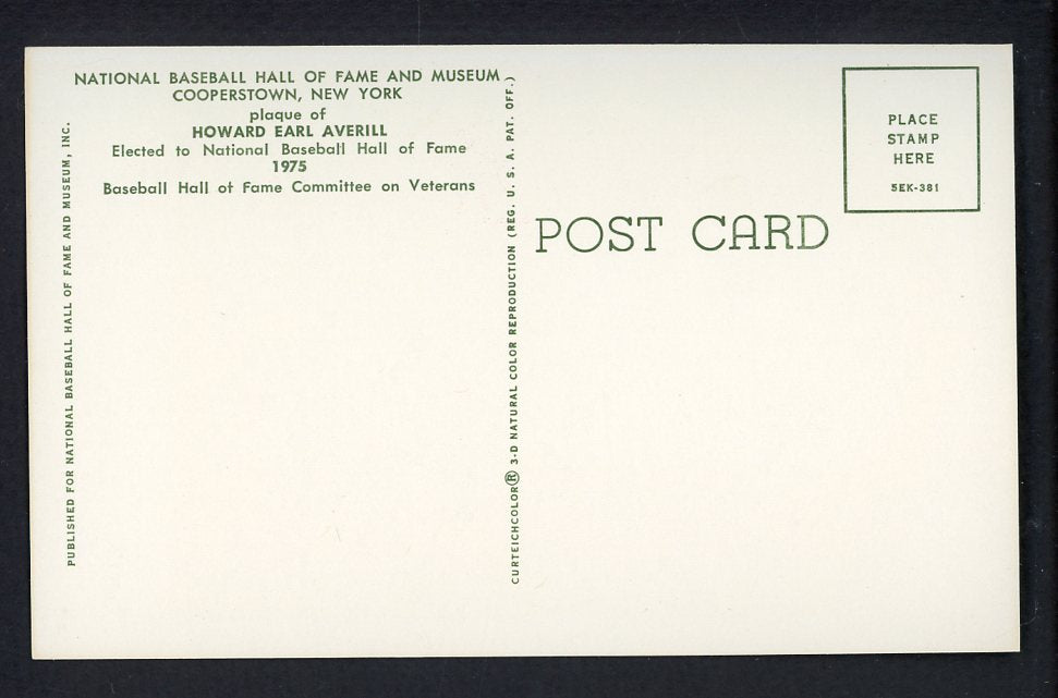 Yellow Hall of Fame Postcard Earl Averill Indians Signed Autographed