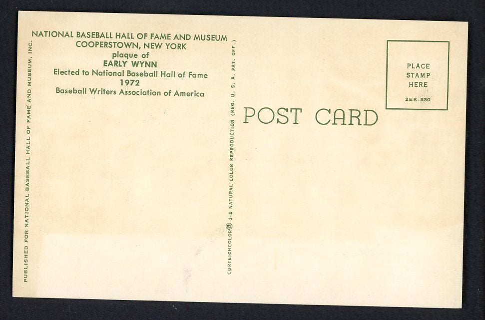 Yellow Hall of Fame Postcard Early Wynn Indians Signed Autographed