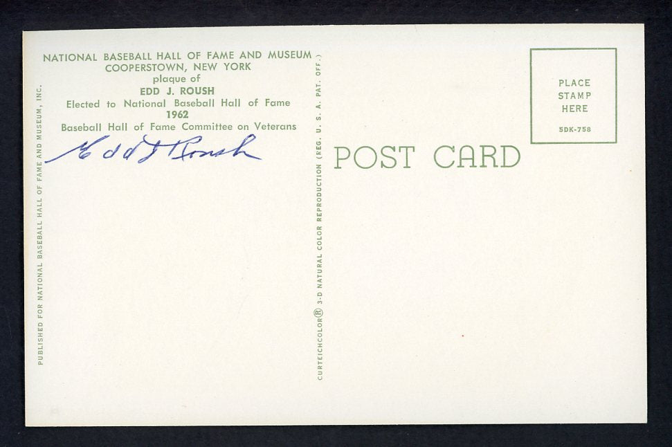 Yellow Hall of Fame Postcard Edd Roush White Sox Signed Autographed