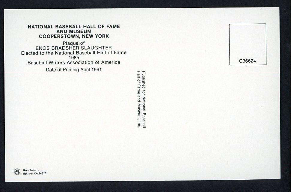 Yellow Hall of Fame Postcard Enos Slaughter Cardinals Signed Autographed