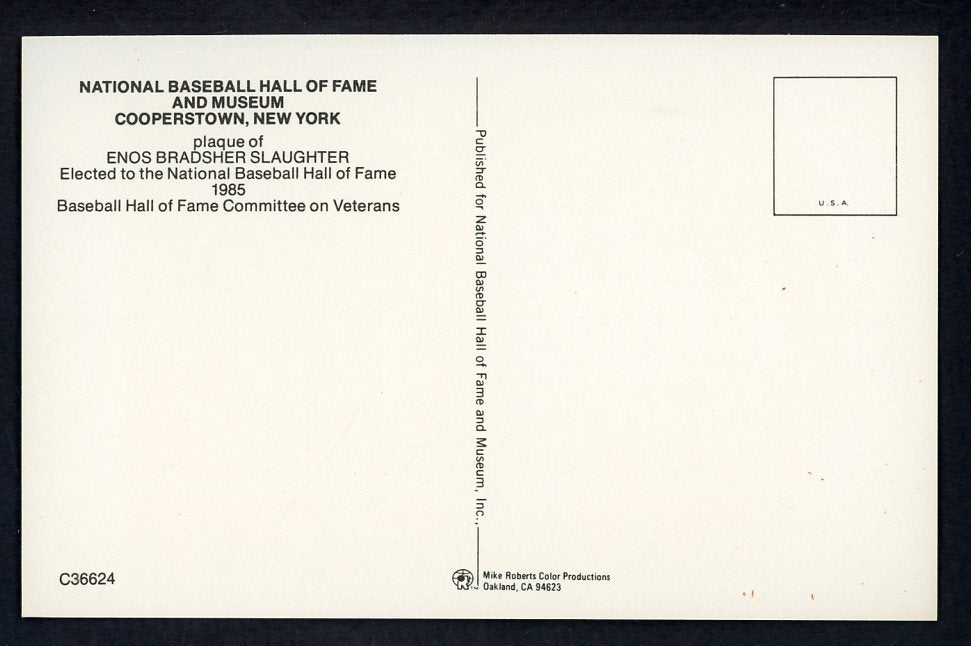 Yellow Hall of Fame Postcard Enos Slaughter Cardinals Signed Autographed