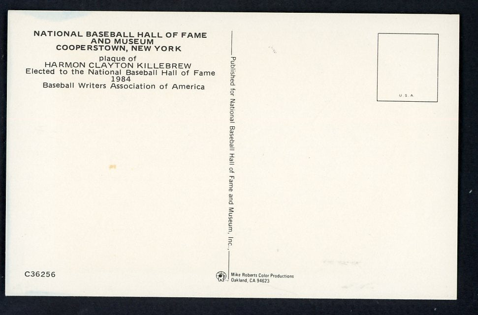 Yellow Hall of Fame Postcard Harmon Killebrew Twins Signed Autographed