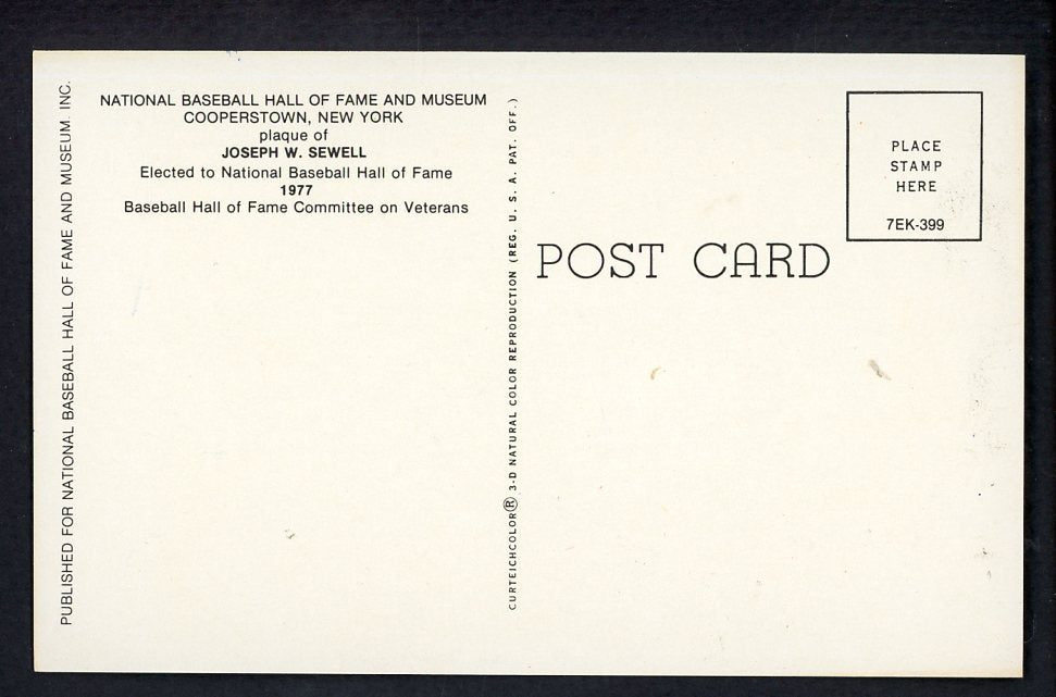 Yellow Hall of Fame Postcard Joe Sewell Indians Signed Autographed