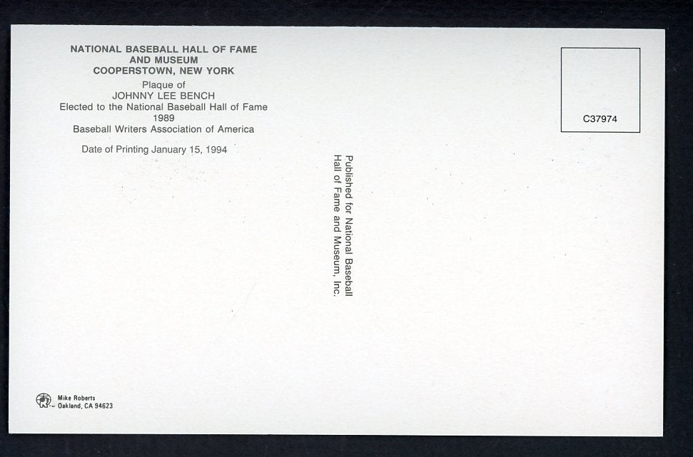 Yellow Hall of Fame Postcard Johnny Bench Reds Signed Autographed