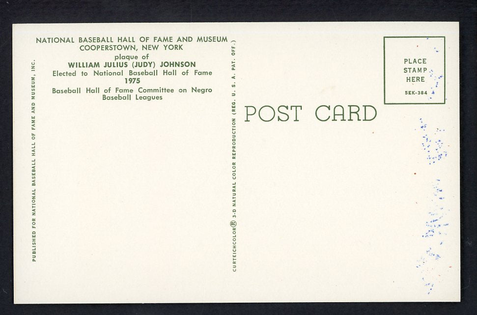 Yellow Hall of Fame Postcard Judy Johnson Signed Autographed