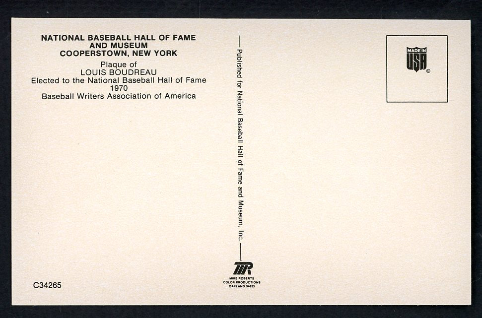 Yellow Hall of Fame Postcard Lou Boudreau Indians Signed Autographed